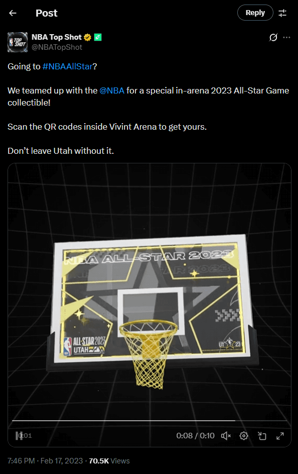 I designed in-arena fan engagement experiences, including large-scale jumbotron visuals and Pack Drop landing pages, supporting events and teams such as NBA All-Star, NBA Paris (Zach LaVine & Cade Cunningham), the Portland Trail Blazers, and the Sacramento Kings. Also included NFT 3D models, rendering, and promotional videos.
