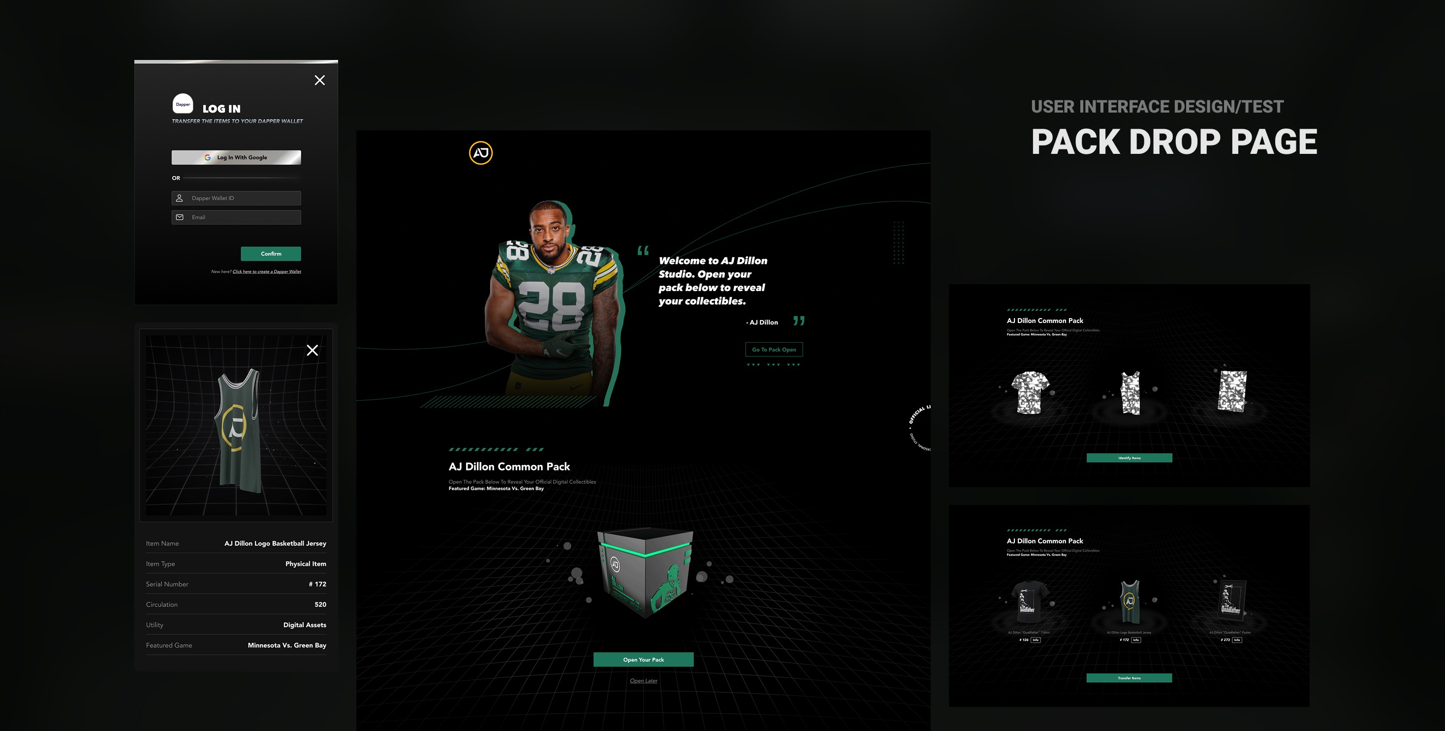 As a Product Designer, I designed in-arena fan engagement experiences, including large-scale jumbotron visuals and Pack Drop landing pages. I also upgraded personal websites for participating NFT athletes, tailoring each experience to their individual brand and NFT integrations. In addition, I created 3D NFT assets and promotional 3D videos for athletes across the NFL and NBA, and produced advertising and promotional materials across both digital and physical touchpoints in close collaboration with the marketing team to support campaign goals.