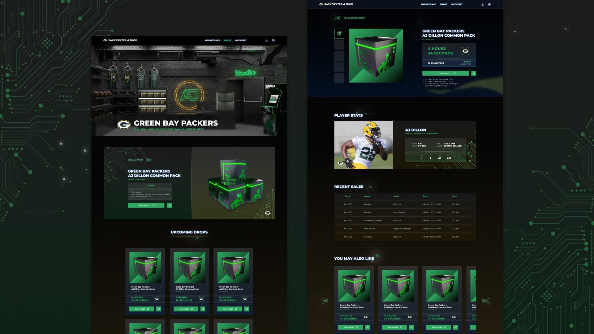 Athlete Studio NFT Landing Page & NFL Team Shop Page (Early Phase)