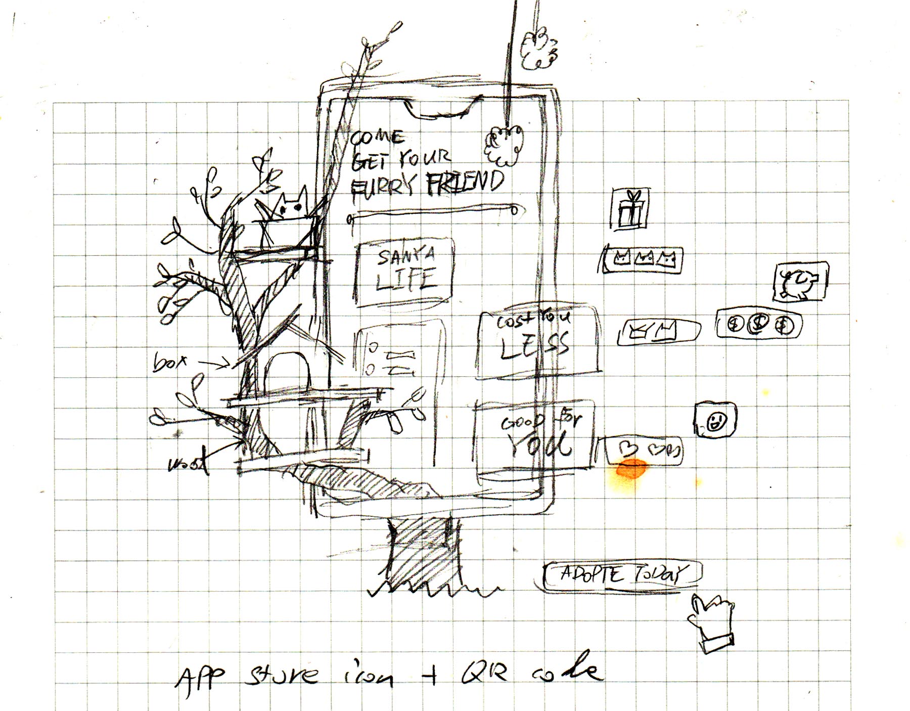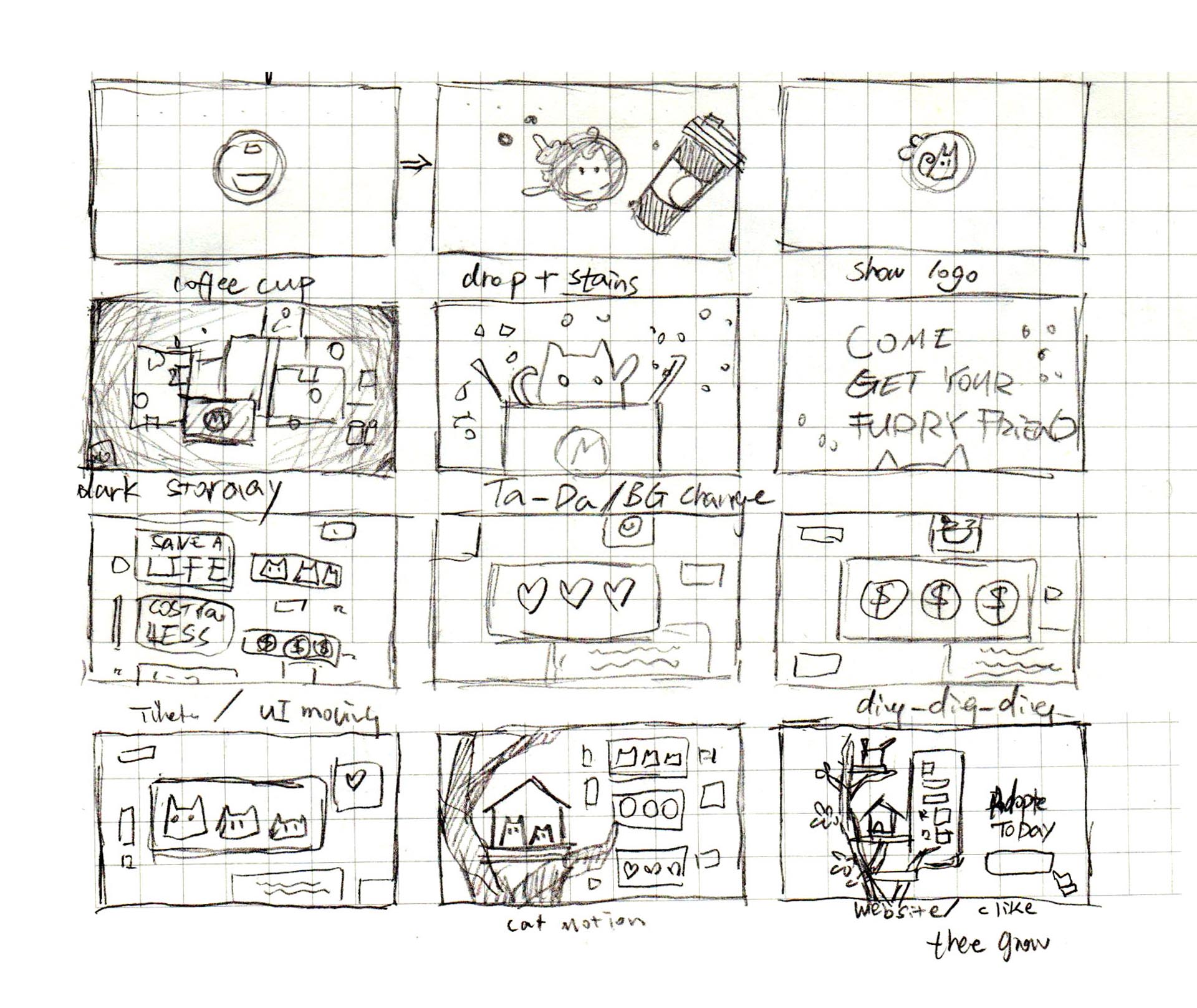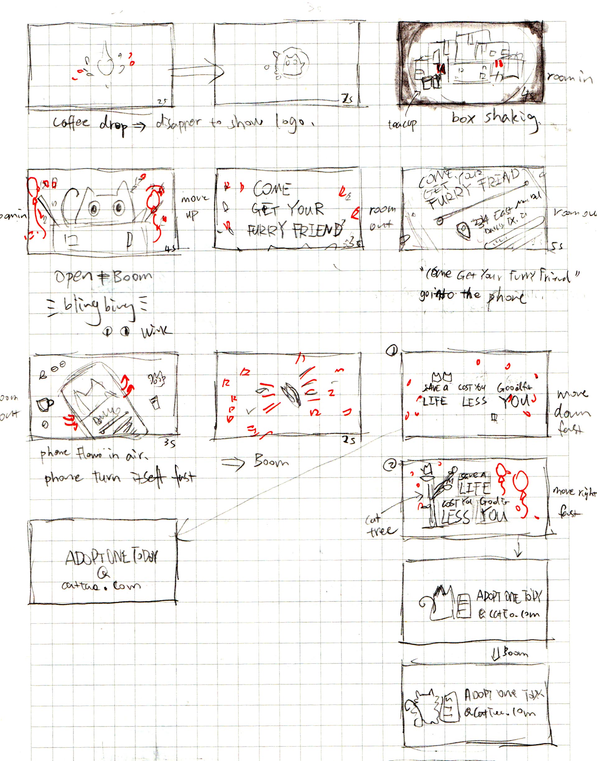 In the beginning, the kitten was in a cardboard box in a dark warehouse. Then the box opens, and the kittens get their home sweet home. The phone screen shows how easy is it to adopt a kitten from KitTea.
