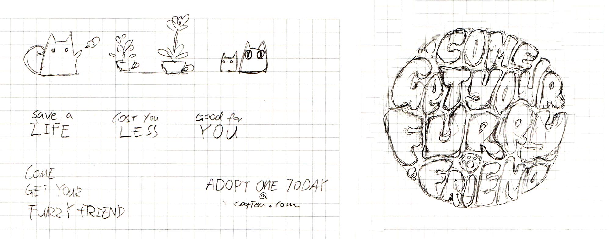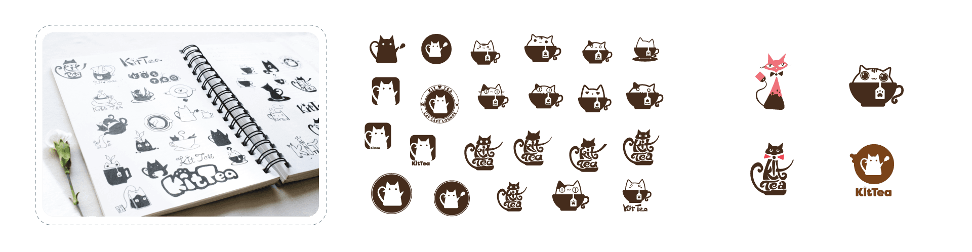 The logo concept cleverly combines a cat and a teapot to show the idea of the store name - KitTea.